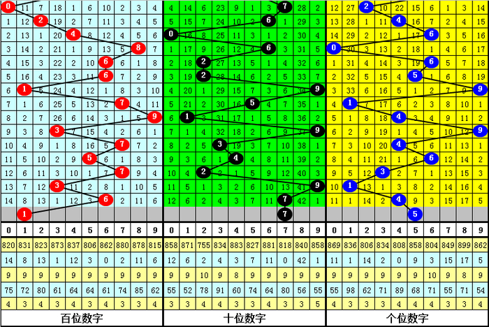 第三位上期开出奖号4,走大3点,本期该位继续走大,参考号码5。